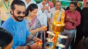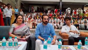 Prosenjit Chatterjee joined them with warmth and enthusiasm, interacting with the children, applauding their performances, and speaking about the significance of Durga Puja as a time of togetherness and cultural pride.