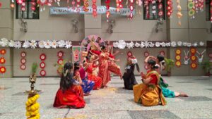 Delhi Public School Kolkata, known for its emphasis on academic excellence blended with cultural richness, showcased the spirit of unity and tradition during the program. Students performed traditional dances, recited shlokas, and presented art inspired by Durga Puja, capturing the essence of Bengal’s most celebrated festival.