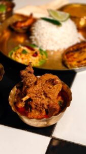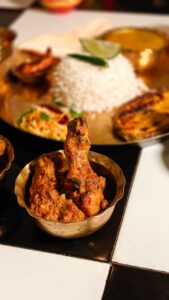 Not just that, it also includes delicacies like Chital Macher Muitha and Laupata Bata Chingri. The meal is beautifully balanced with tangy Chaltar Chutney. As it’s Poila Boisakh, the dessert features Sita Bhog, and the experience ends with a refreshing Mishti Paan.